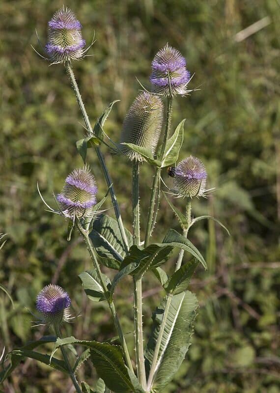 Cruydt Hoeck Grote Kaardenbol (Dipsacus fullonum): inheemse wilde bloem met paarsblauwe bloemhoofdjes. Zaaien mrt.–mei, bloei jul.–sep.