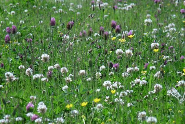 Cruydt Hoeck Nectar onder het Maaimes: inheems bloemenmengsel voor een bloemrijk gazon en bijen en bestuivers. Zaaien mrt.–mei, bloei mei–sep.