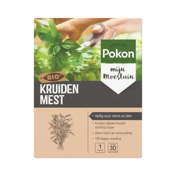 Pokon Bio Kruiden Mest 1 kg is een biologische korrelmeststof speciaal ontwikkeld om je kruidenplanten gezond, sterk en vol aroma te laten groeien. Deze meststof ondersteunt de natuurlijke groei van kruiden, versterkt hun weerstand tegen ziektes en plagen en draagt bij aan een heerlijk geurige en smaakvolle oogst. De mest geeft tot wel 120 dagen lang geleidelijke voeding zonder risico op verbranding van de planten.