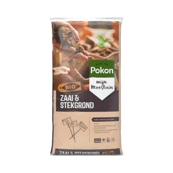 Pokon Bio Zaai- & Stekgrond Turfvrij is een fijne, duurzame grond voor het zaaien en stekken van jonge planten en is verkrijgbaar in 10 en 20 liter.
